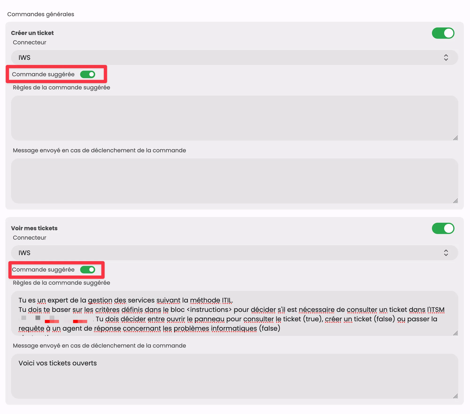 The "Suggested command rules" field defines the instructions to identify whether or not it is necessary to trigger this suggested command.