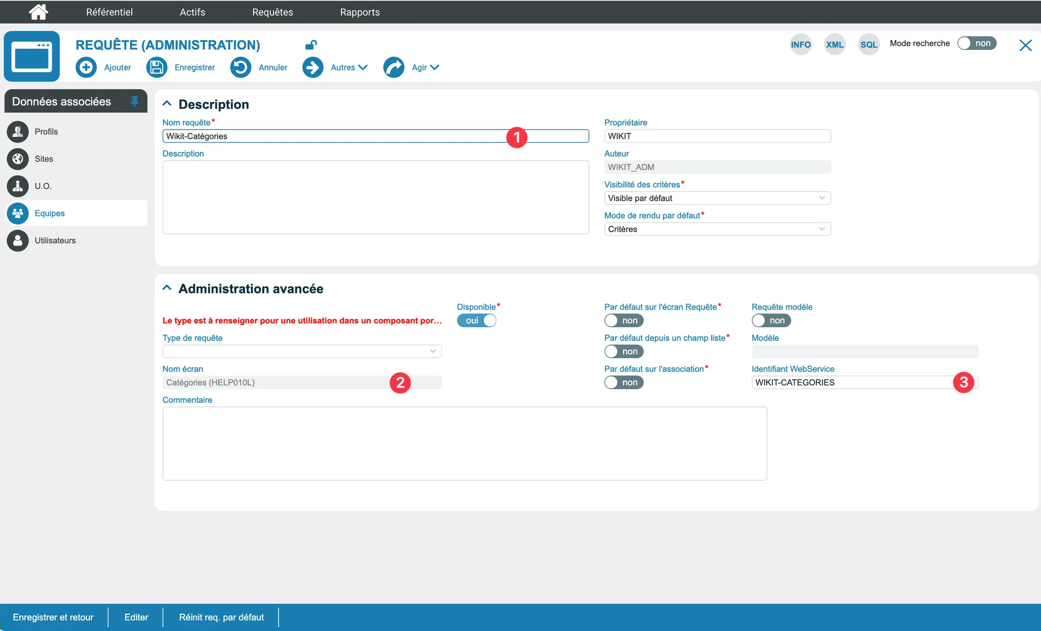 - Nom requête : Wikit-Catégories