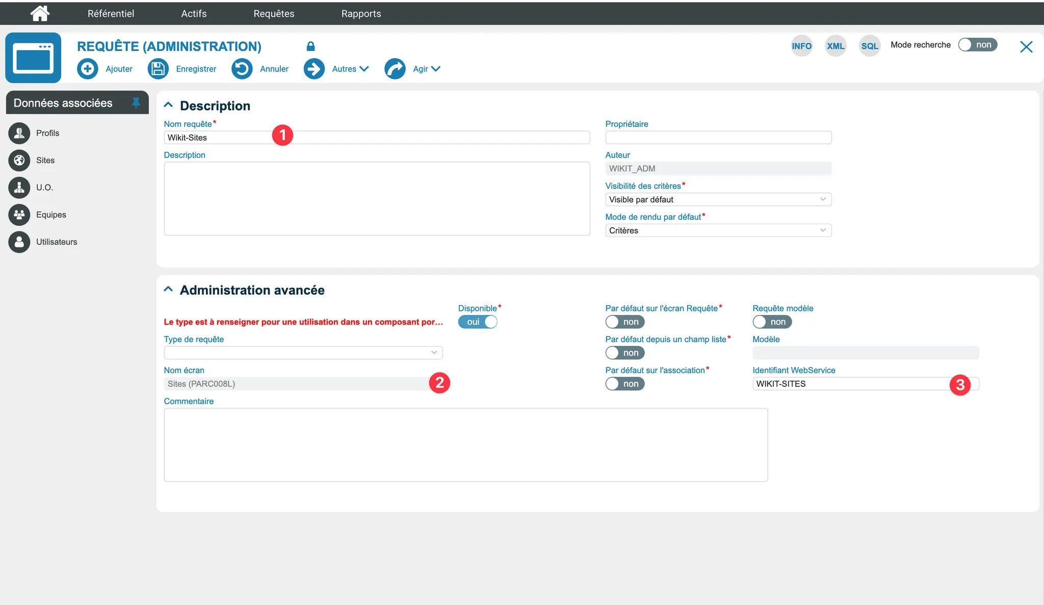 - Nom requête : Wikit-Sites